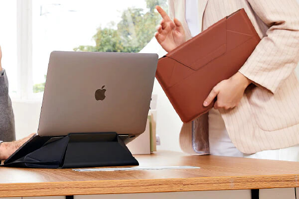 Dank des patentierten Smart-Folding-Designs lässt sich die MOFT Laptop Hülle in weniger als einer Sekunde in einen Ständer verwandeln und verschafft Dir überall mehr Ergonomie.
