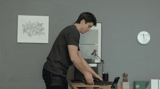 Der ganzen Tag im Sitzen zu arbeiten, ist für Körper und Geist anstrengend. Unsere Schreibtisch und Ständer-Kombination mit fünf Positionen revolutioniert die Heim- und Büroarbeit.